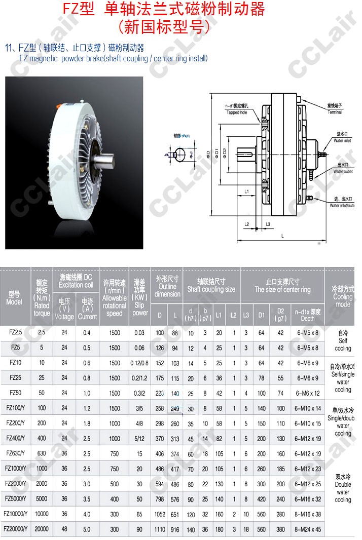 FZ2.5,FZ5,FZ10,FZ25,FZ50,FZ100/Y,FZ200/Y,FZ400/Y,FZ630/Y,FZ5000/Y,FZ-80,法蘭式磁粉制動器