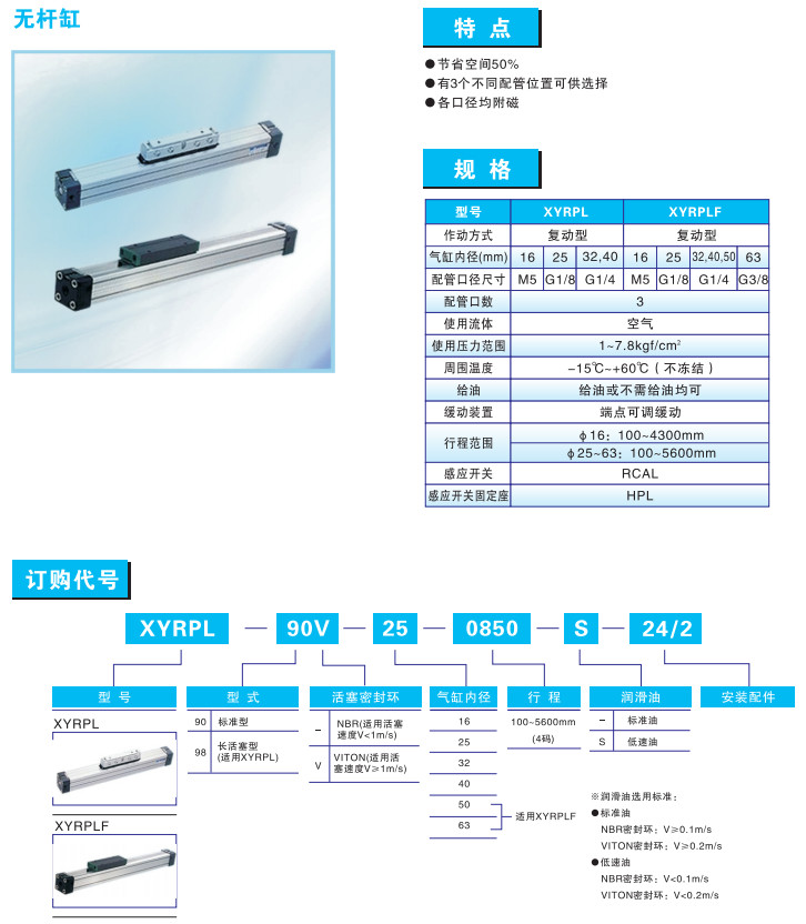 XYRPL-90V-16-0850,XYRPL-98V-25,XYRPLF-90V-32,XYRPL-90V-50,無桿氣缸