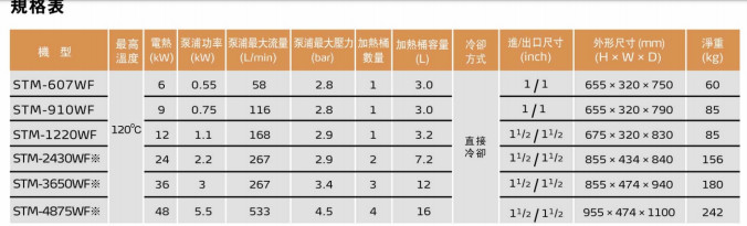 詳細(xì)信息 STM-607WF,STM-910WF,STM-1220WF,STM-2430WF,STM-3650WF,STM-4875WF,流量型水式模具控溫機(jī)