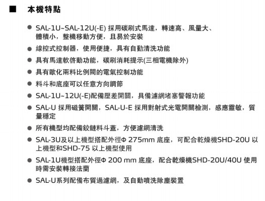 詳細(xì)信息 SAL-1U,SAL-3U,SAL-6U,SAL-12U,SAL-1U-E,SAL-3U-E,SAL-6U-E,SAL-12U-E,歐化直結(jié)式真空填料機(jī)