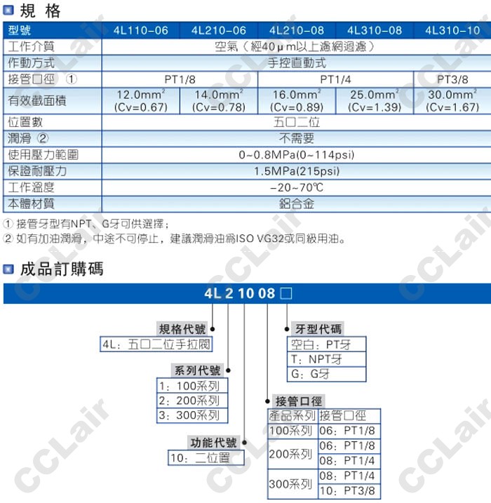 4L110-06-T,4L110-08-T,4L110-08-G,4L110-10-T,4L210-06-G,4L310-10-G,4L310-06-G,手拉閥