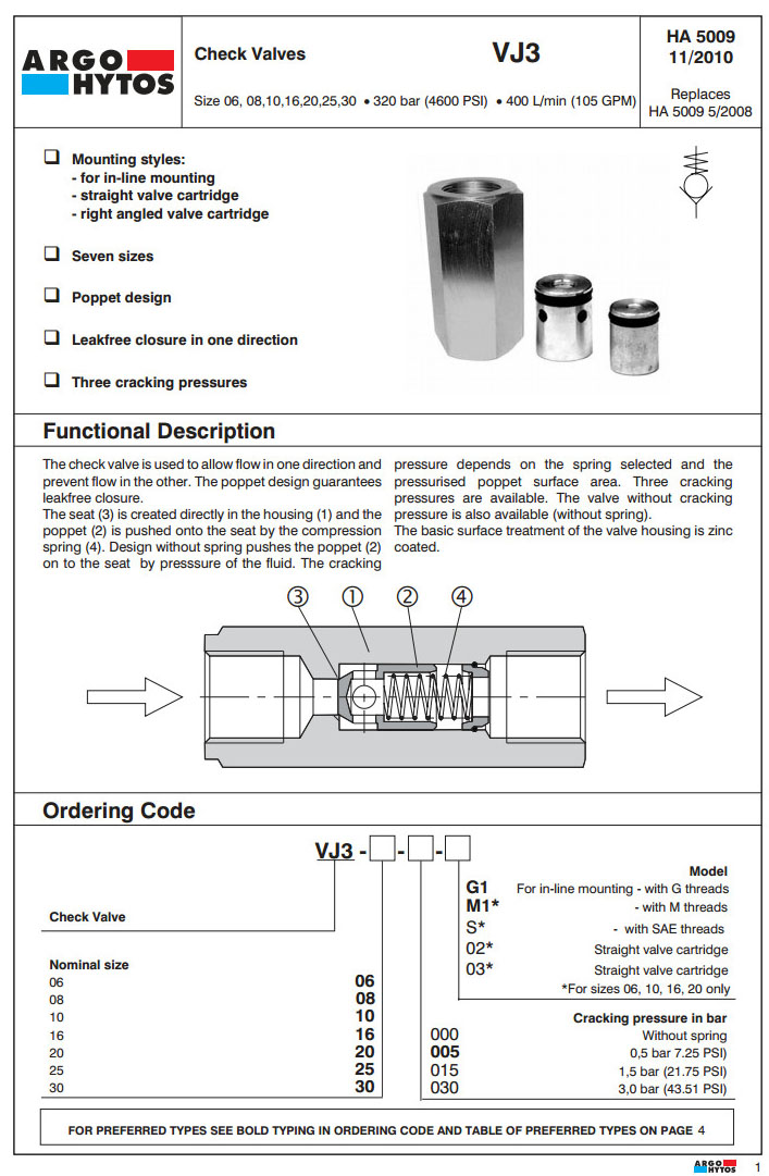 VJ3-06,VJ3-08,VJ3-10,VJ3-16,VJ3-20,VJ3-25,VJ3-30,VJ3-06-005-M1,ARGO止回閥