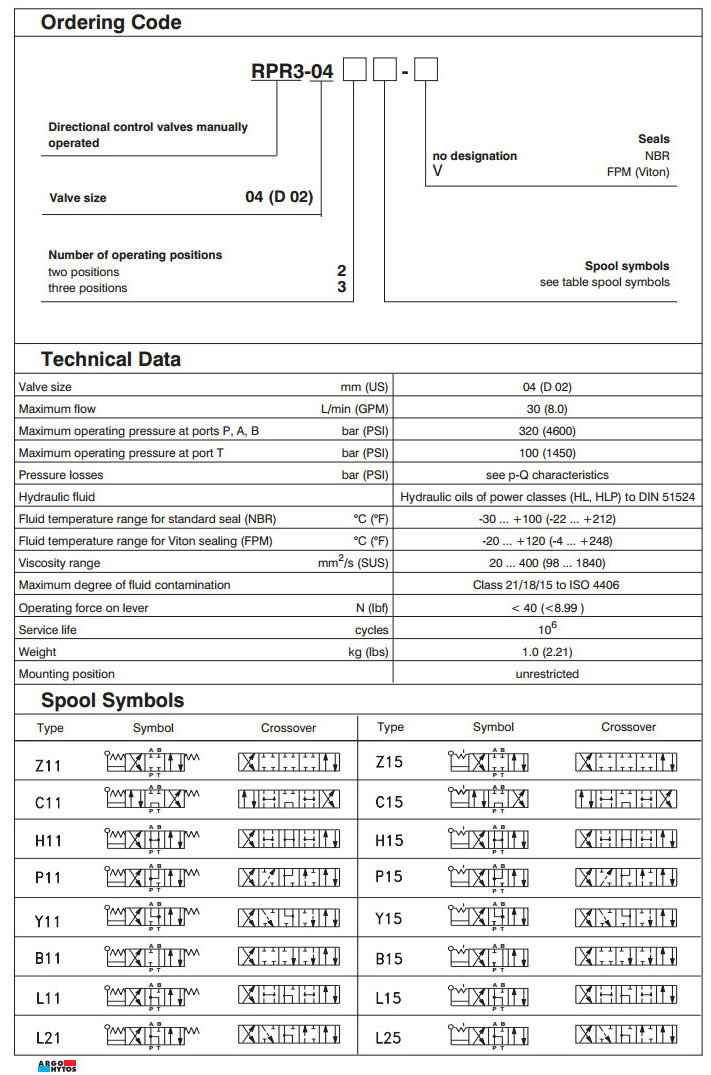 RPR3-042,RPR3-043,RPR3-042Z11,RPR3-043Z11,RPR3-042L21,RPR3-043Y11,RPR3-042R11,ARGO手動方向控制閥