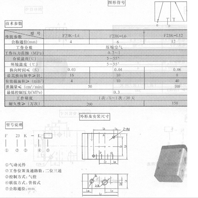二位三通單氣控?fù)Q向閥F23K-L4,F23K-L6,F23K-L12