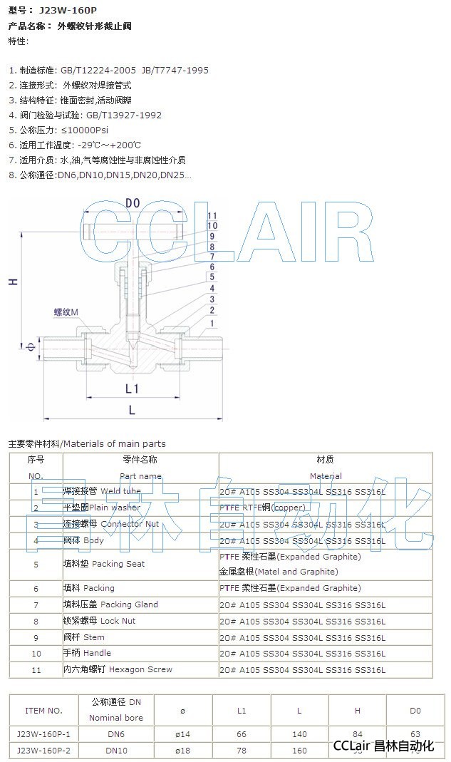 詳細(xì)信息 J23W-160P-1,J23W-160P-2,外螺紋針形截止閥