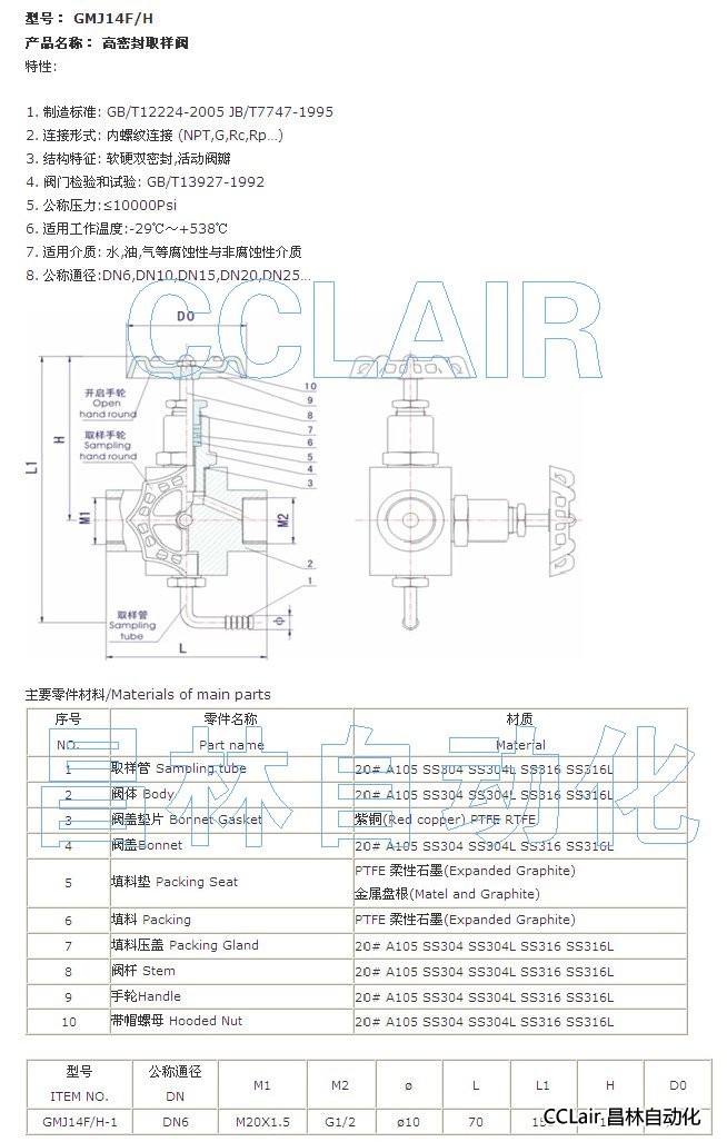 » GMJ14F-1,GMJ14H-1,高密封取樣閥