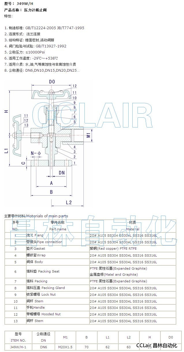 J49W-1,J49H-1,壓力計截止閥