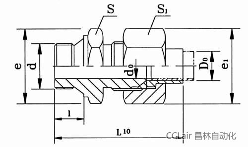 管子外徑D0為10mm的擴口式端直通管接頭: