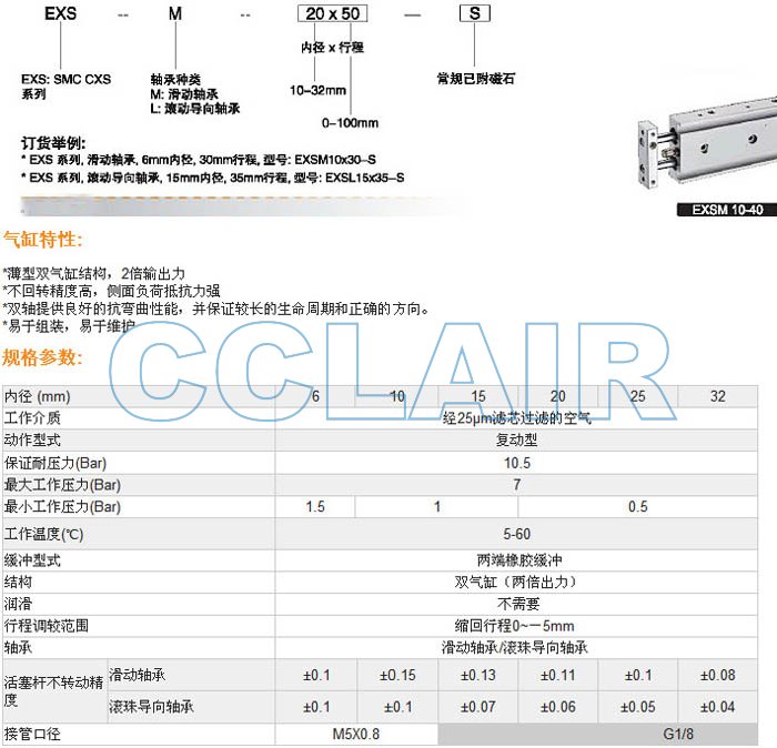 詳細信息 EXSM6X50,EXSL6X50,EXSM10X50,EXSM15X50,EXSL20X50,EXSL25X50,EXSM32X50,導桿氣缸