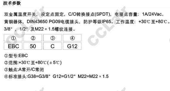 詳細(xì)信息 EBC50A-G38,EBC50A-G12,EBC50A-M22,EBC50C-G38,EBC50C-G12,EBC50C-M22,雙金屬溫度開(kāi)關(guān)