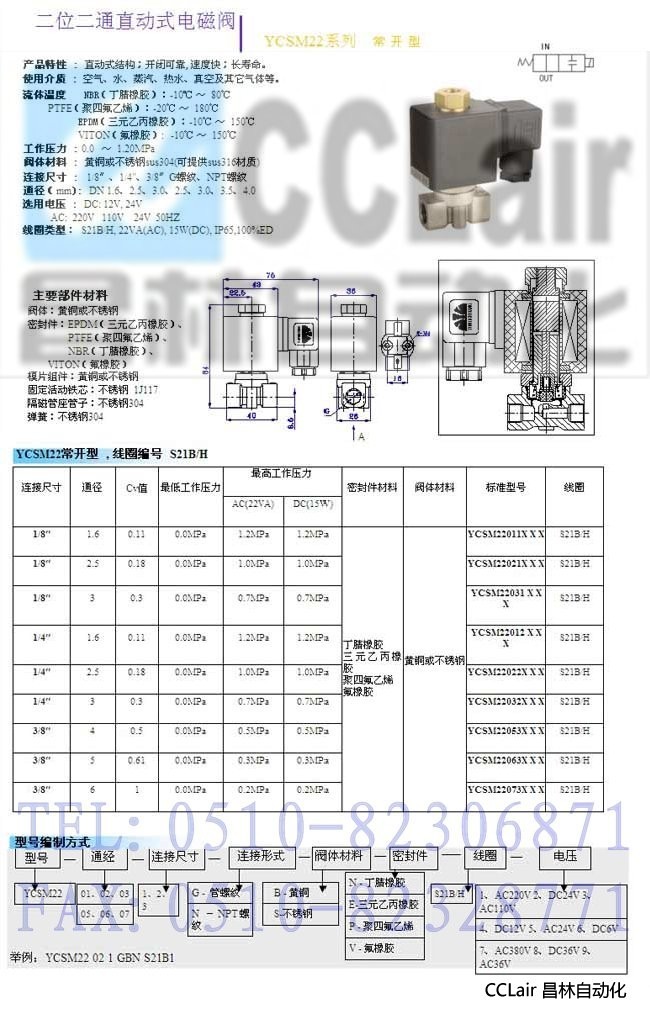 YCSM22052,YCSM22053,YCSM22061,YCSM22062,二位二通直動(dòng)式電磁閥