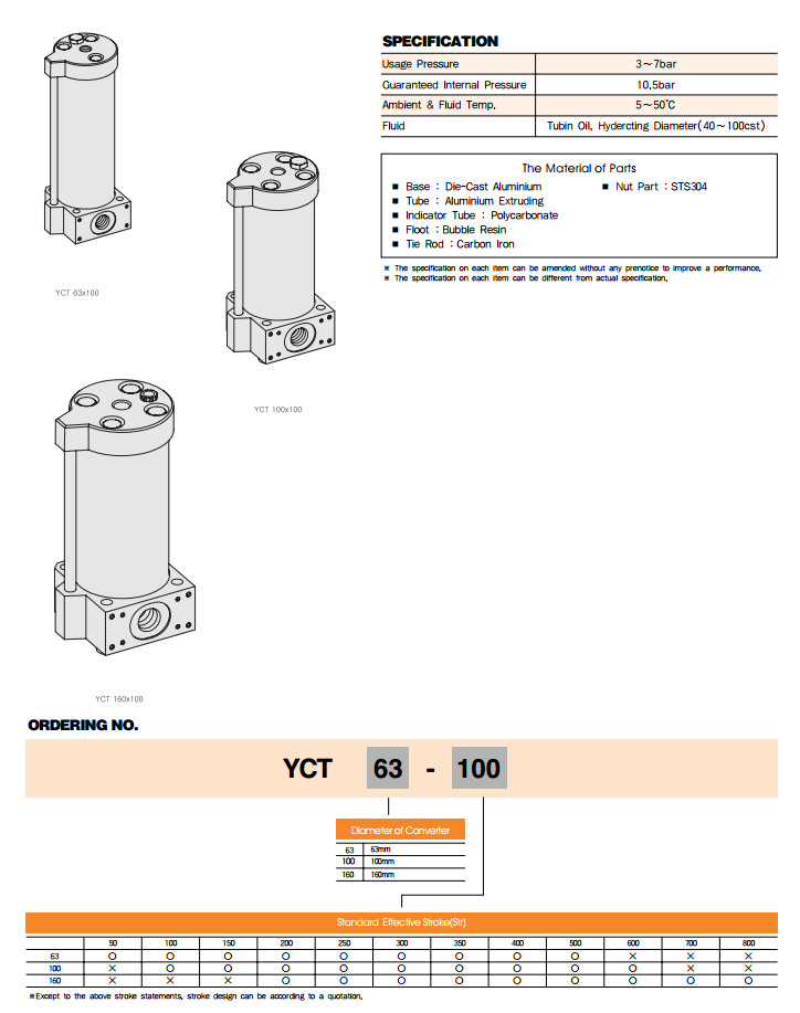 氣缸: YCT63-63,YCT63-100,YCT63-160,YCT100-63,YCT100-100,YCT100-160,YCT160-63,YCT160-100,YCT160-160