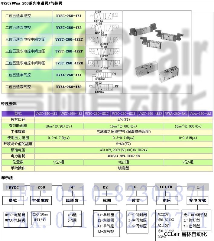 UVSC-260-4E1,UVSC-260-4E2,UVSC-260-4E2C,UVSC-260-4E2P,UVSC-260 4E2R,電磁閥