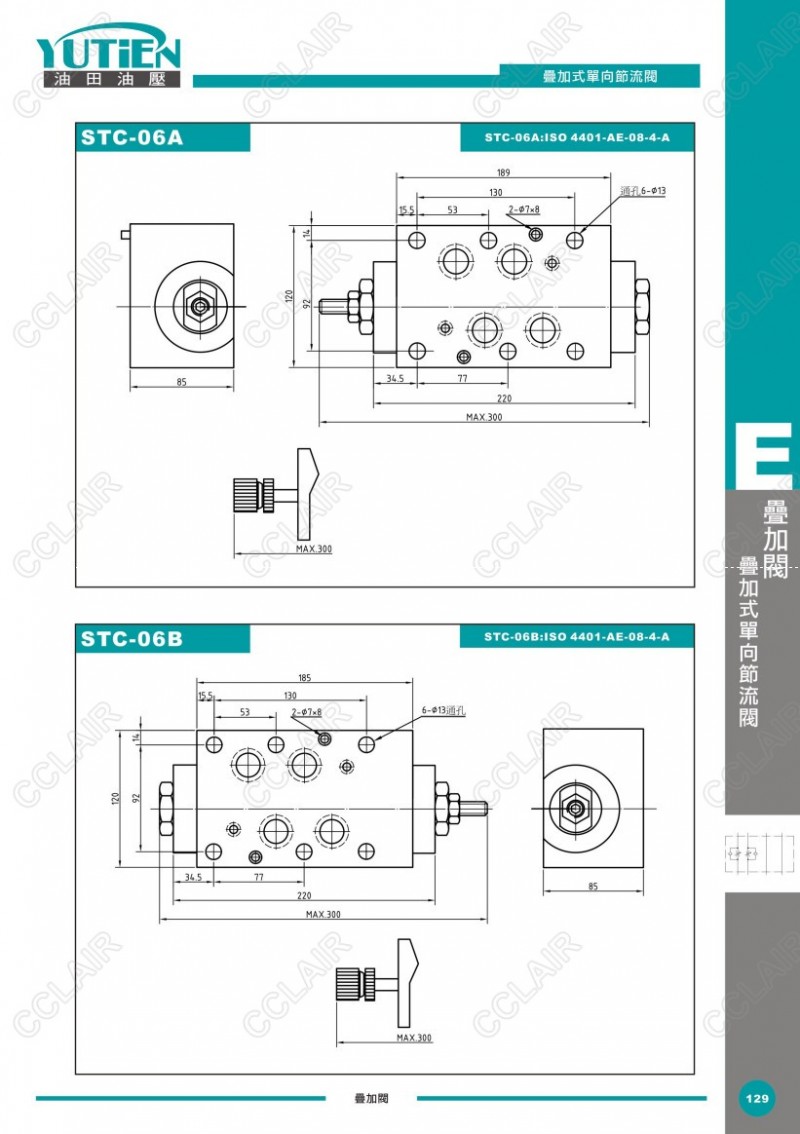 YUTIEN油田疊加式單向節(jié)流閥STC-02A,STC-03B,STC-04P,STC-06W