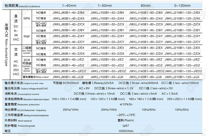 JWKLJ80B1-40-Z/BX,JWKLJ100B1-50-Z/AX,JWKLJ210B1-120-J/JK,接近開關(guān)