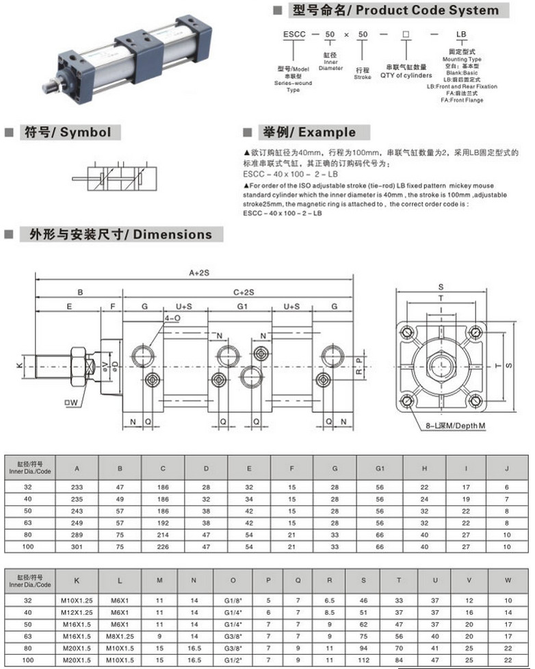 ESCC-32*50-S,ESCC-40*50-S,ESCC-50*50-S,ESCC-63*100-S,ESCC-80*100-S,標準氣缸
