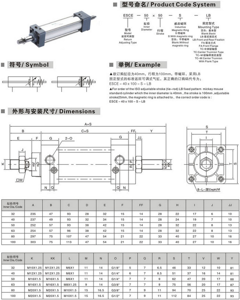 ESCE-32*50-S,ESCE-40*50-S,ESCE-50*50-S,ESCE-63*100-S,ESCE-80*100-S,標(biāo)準(zhǔn)氣缸
