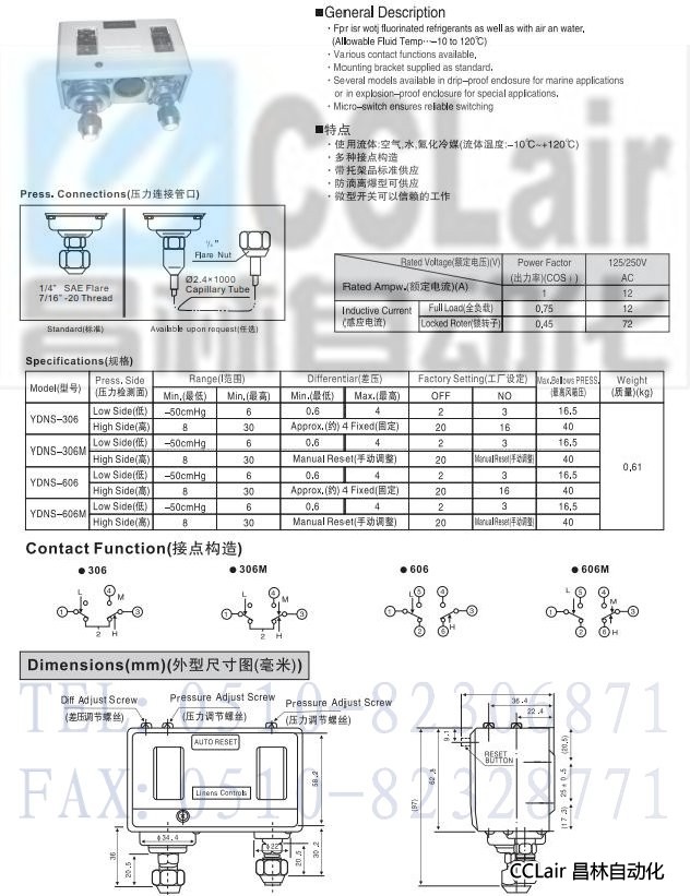 YDNS-306,YDNS-306M,YDNS-606,YDNS-606M,壓力開關