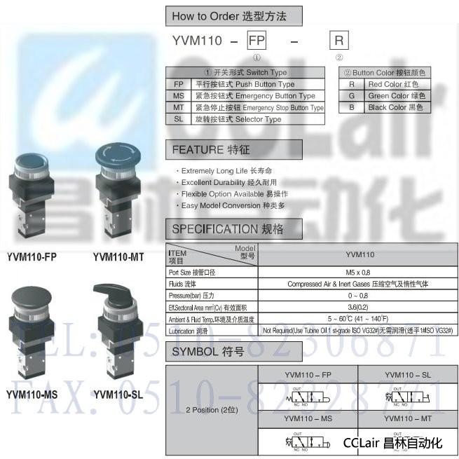 YVM110-FP,YVM110-SL,YVM110-MS,YVM110-MT,3通機(jī)械閥