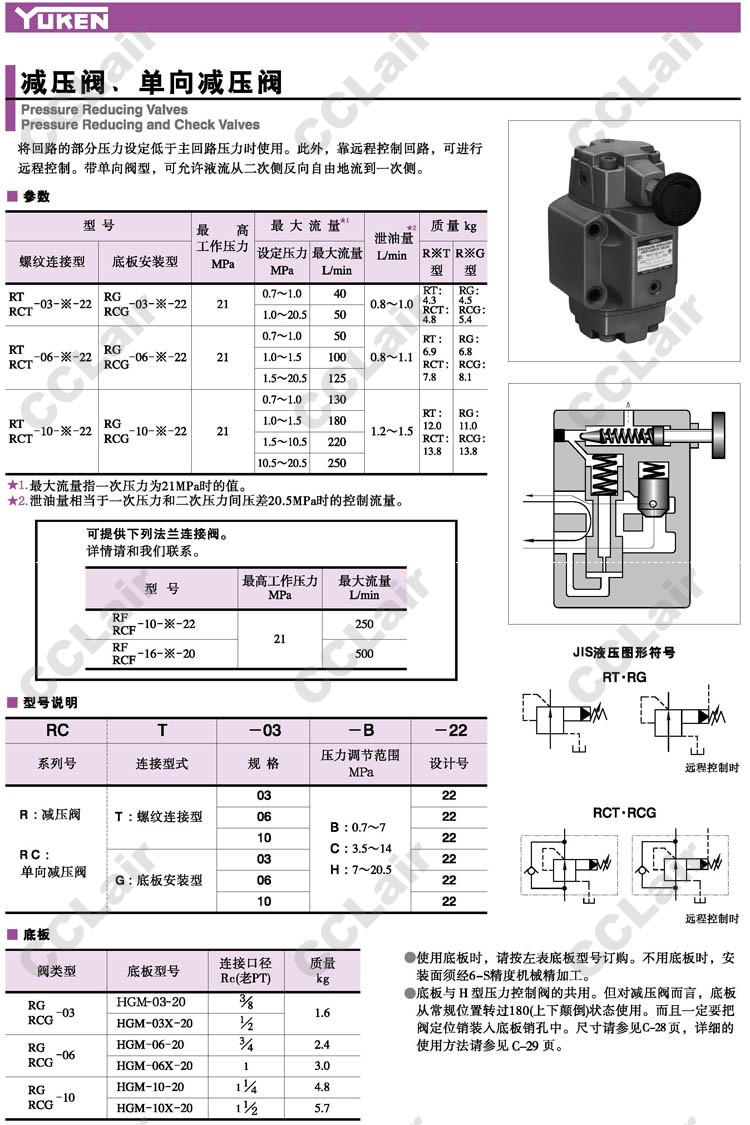 RCT-03,RCT-06,RCT-10,RCG-03,RCG-06,RCG-10,RT-03,RT-06,RT-10,RG-03,RG-06,RG-10,單向減壓閥,YUKEN油研