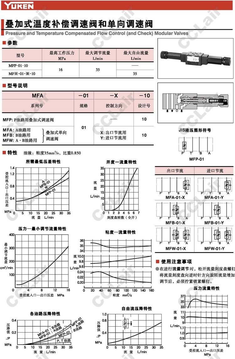 詳細信息 MFA-01-X-10,MFA-01-Y-10,MFB-01-X-10,MFB-01-Y-10,MFW-01-X-10,MFW-01-Y-10,疊加式單向調速閥,YUCIYUKEN榆次油研