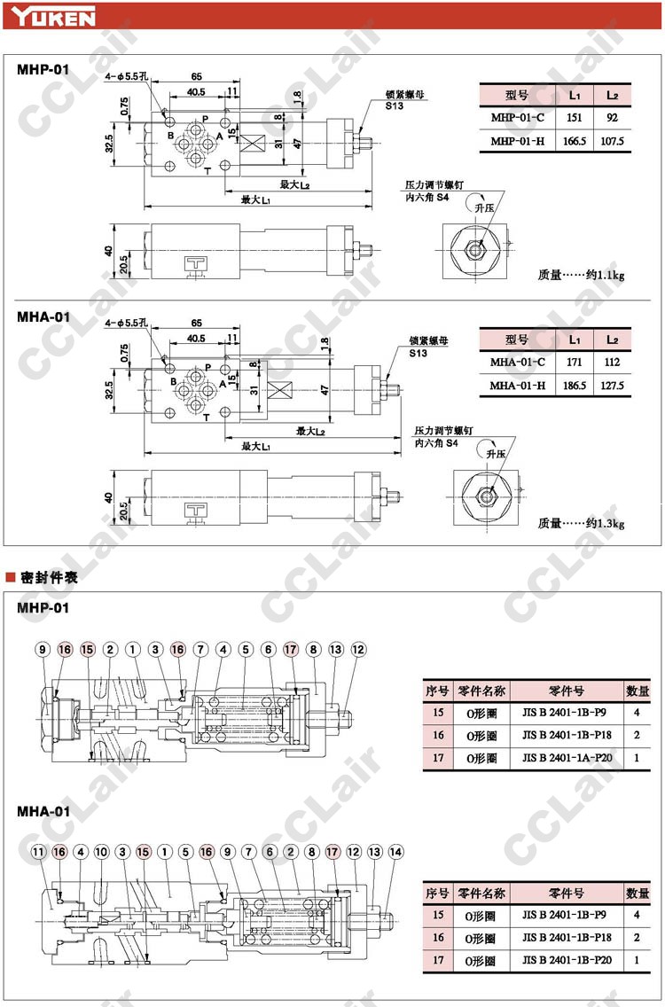 » MHA-01-C-30,MHA-01-H-30,疊加式平衡閥,YUCIYUKEN榆次油研