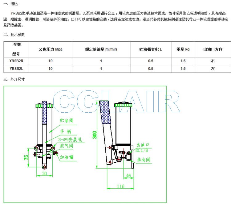 型號: YRSB2R,YRSB2L,手動油脂泵