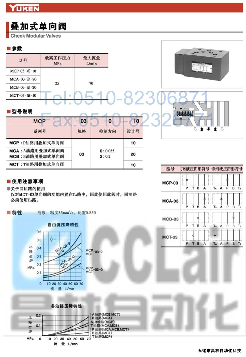 MCP-03-0-10,MCP-03-2-10,MCA-03-0-20,疊加式單向閥,榆次油研疊加式單向閥,YUKEN疊加式單向閥