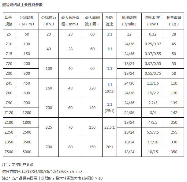 Z5,Z10,Z15,Z20,Z30,Z45,Z60,Z90,Z120,Z180,Z250,Z350,Z500,隔爆型電動裝置