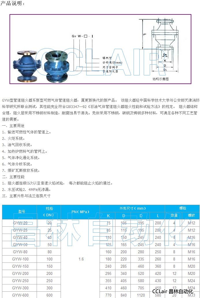 GYW-20,GYW-25,GYW-40,GYW-50,GYW-80,GYW-100,GYW-150,管道阻火器