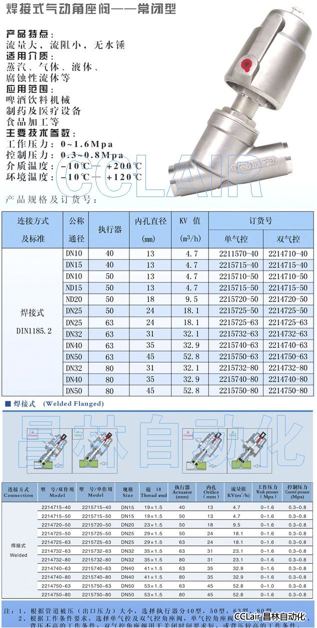 詳細信息 2211570-40,2215715-40,2214710-40,2214715-40,2215710-50,對焊式氣動角座閥