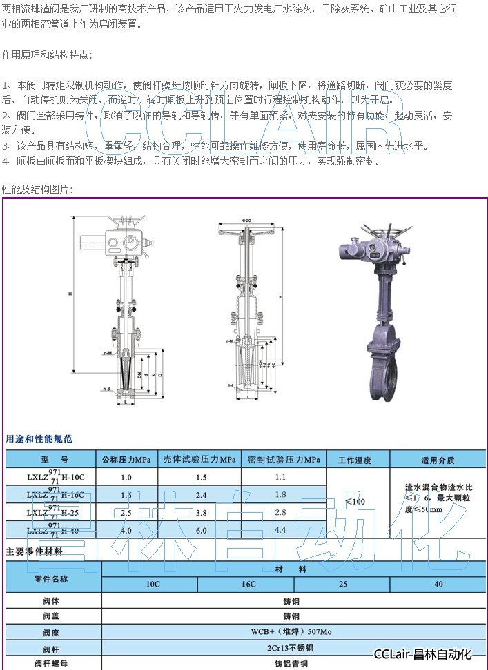 詳細信息 LXLZ971H-10C,LXLZ71H-10C,LXLZ971H-16C,LXLZ971H-25,LXLZ971H-40,兩相流排渣閥