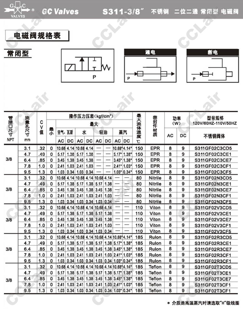 S311GF02N8AD3,GC Valves S311GF02N8AD5,S311GF02N8AD7,S311GF02N8AE1,S311GF02N8AE7,S311GF02N9AF1,