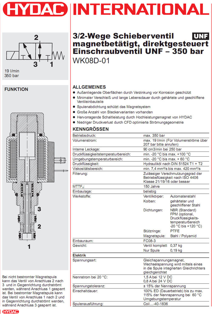 WK08D-01-C-N-24DG,WK08D-01-C-N-230AG,HYDAC二位三通方向滑閥