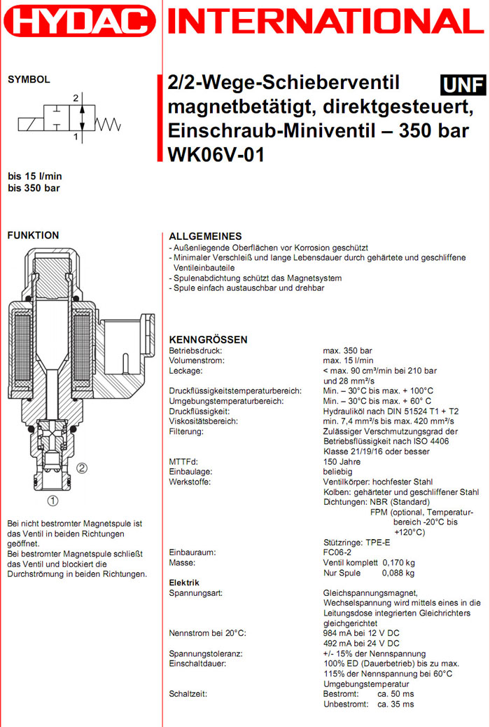 WK06V-01-C-N-0,HYDAC電磁2/2方向滑閥