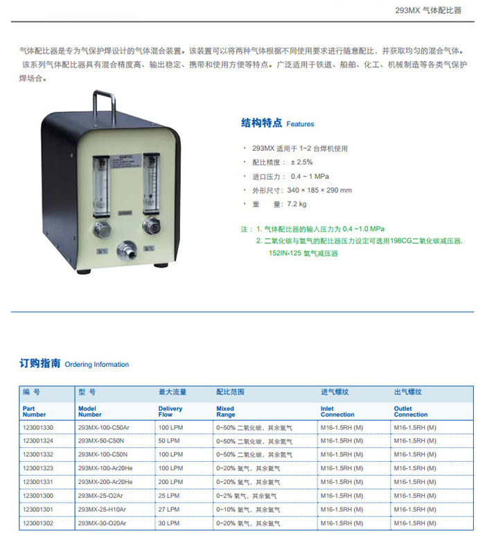 293MX-100-C50Ar,293MX-50-C50N,293MX-100-C50N,293MX-100-Ar20He,293MX-200-Ar20He,氣體配比器