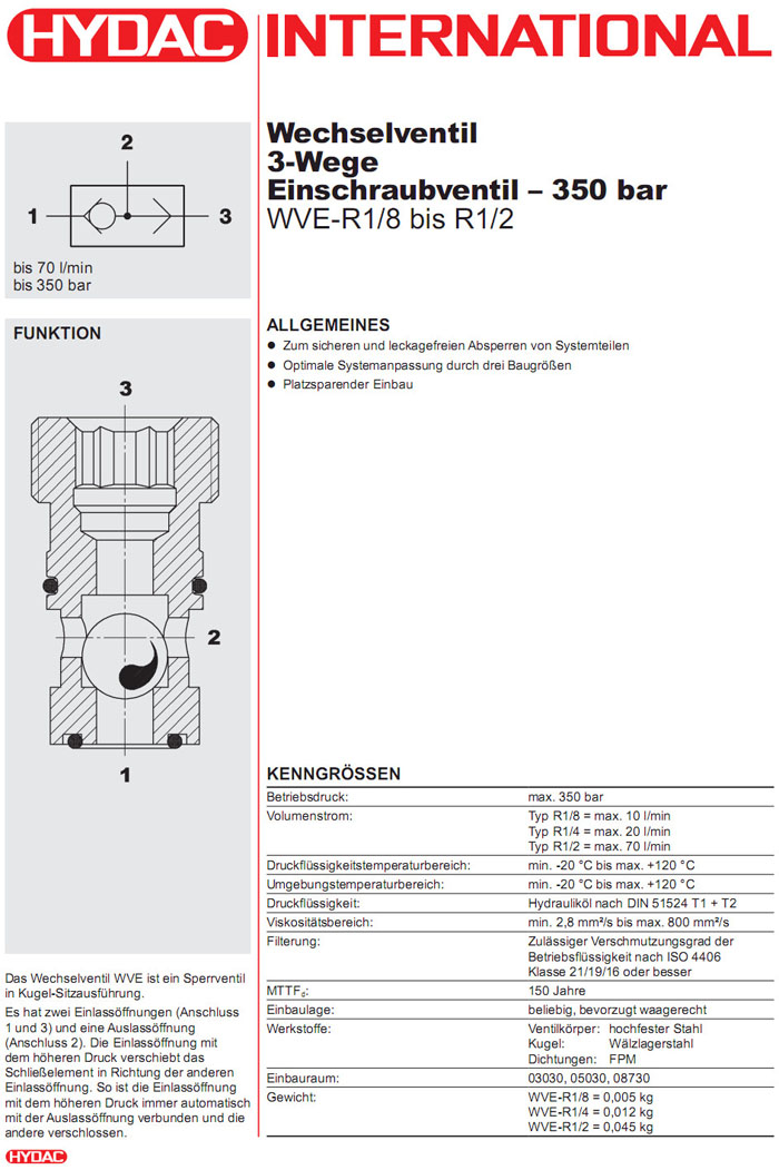 WVE-R1/8-010,WVE-R1/4-010,WVE-R1/2-010,HYDAC梭轉(zhuǎn)換閥