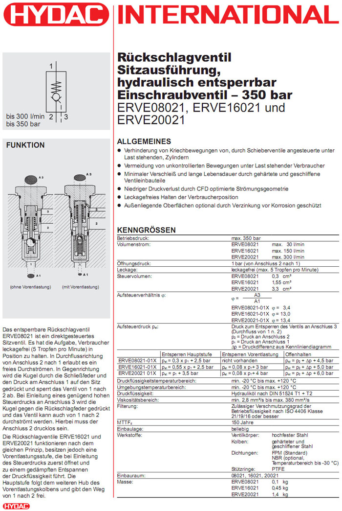 ERVE08021-01-C-V-3.4-1,ERVE16021-01-C-V-13-1,ERVE20021-01-C-V-13.4-1,HYDAC止回閥 |