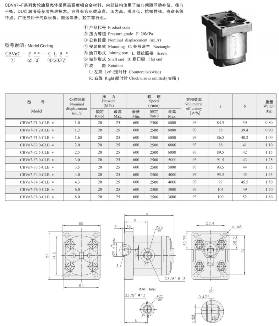 CBVn7-F1.0-CLBL,CBVn7-F1.2,CBVn7-F2.0,CBVn7-F3.0,CBVn7-F4.0,CBVn7-F6.0,齒輪油泵