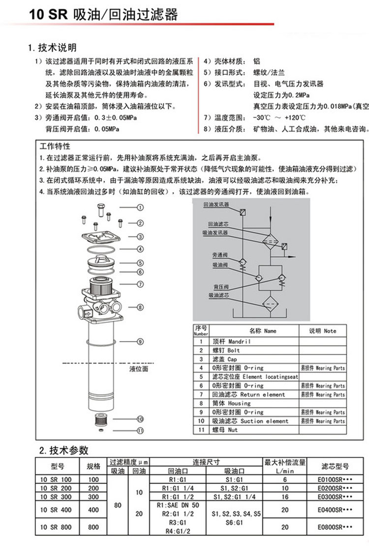 10SR100KN10,10SR100KN20,10SR200KN10,10SR200KN20,10SR300KN20,10SR400KN10,10SR800KN20,回油過濾器 |