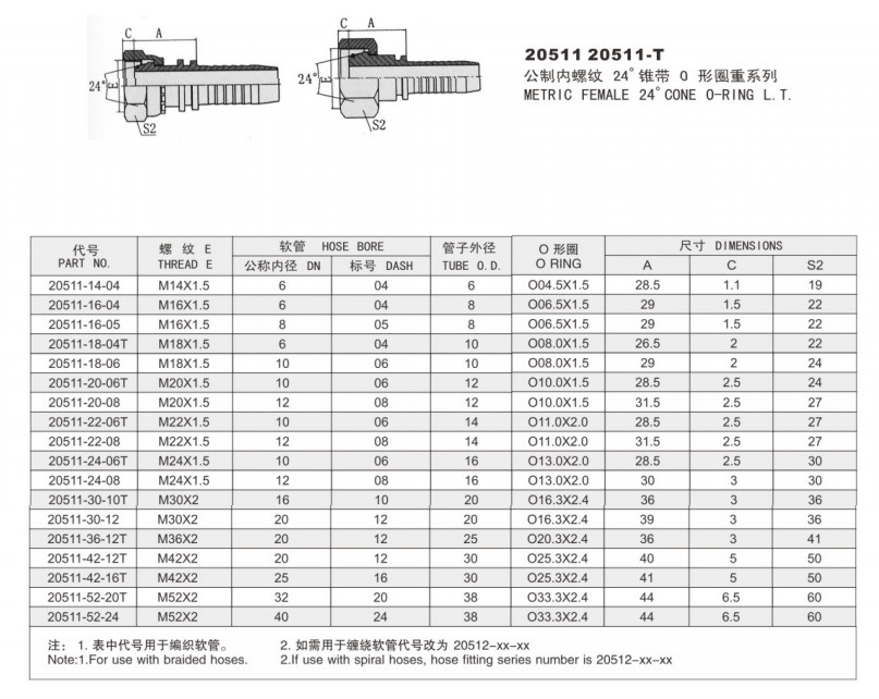 20511-14-04,20511-16-04,20511-16-05,20511-18-04T,20511-18-06,20511-20-06T,扣壓式軟管接頭 |