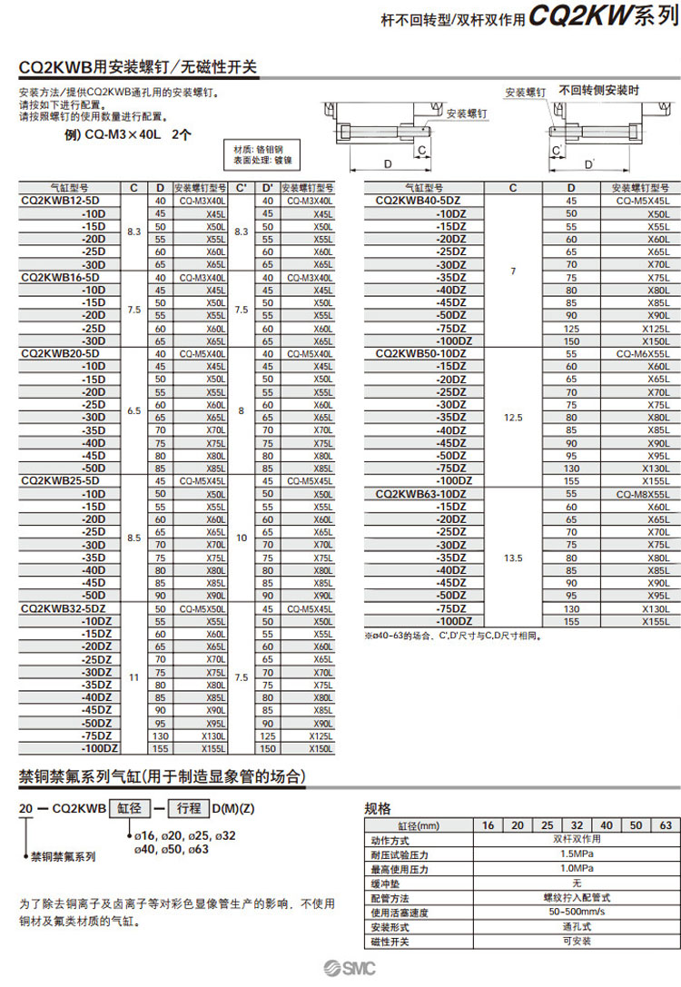 CQ2KWB50-30D,CQ2KWB50-35D,CQ2KWB50-40D,CQ2KWB50-45D,CQ2KWB50-50D,CQ2KWB50-75D,CQ2KWB50-100D,CQ2KWB63-10D,CQ2KWB63-15D,