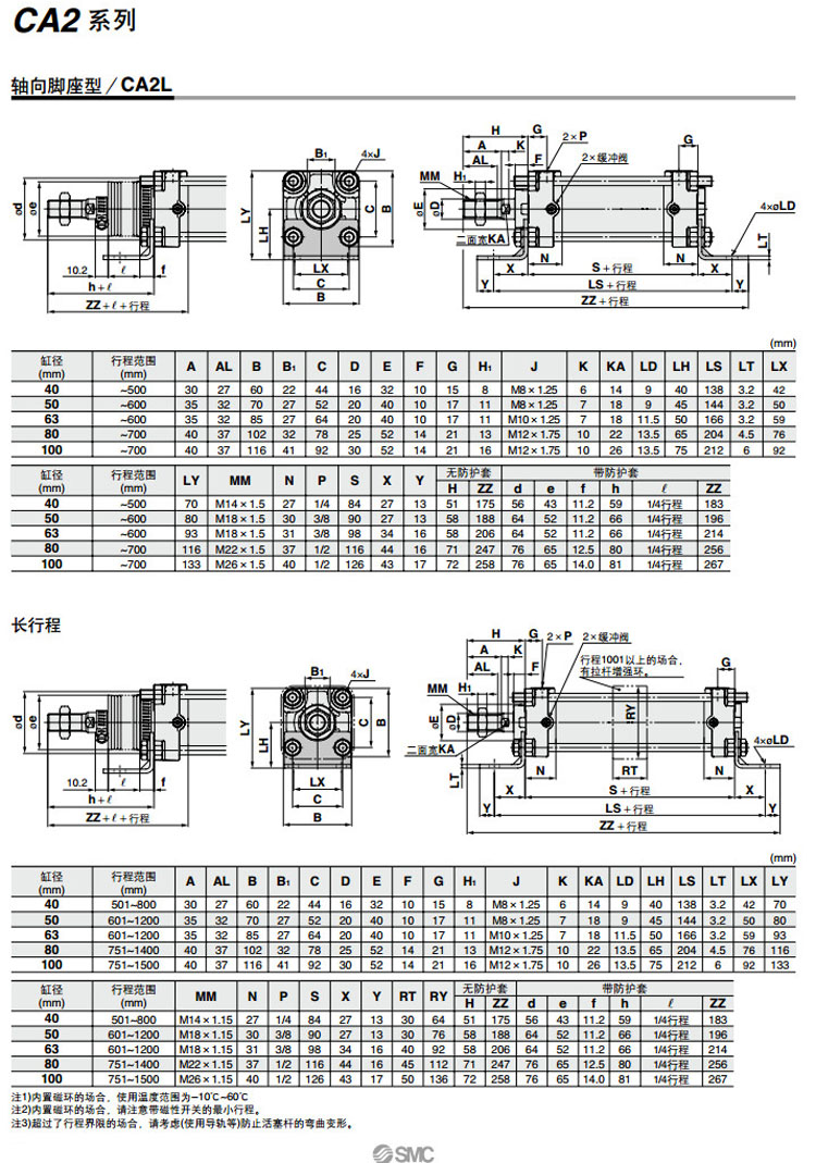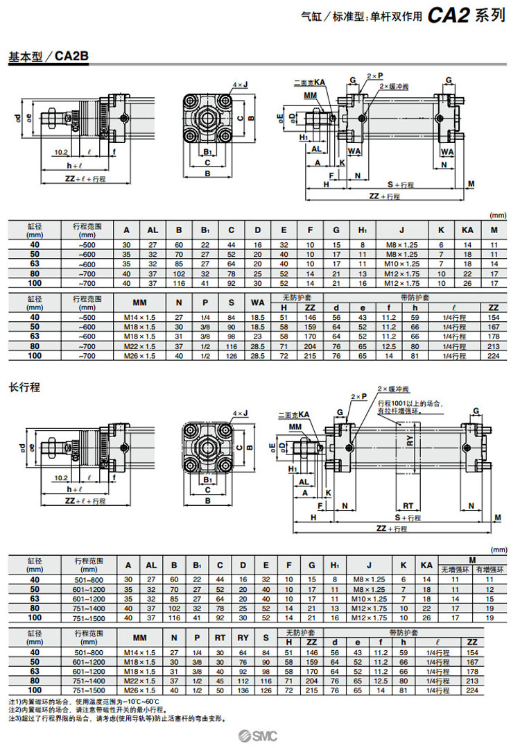 CDA2D80-600,CDA2D100-600,CDA2T50-600,CDA2T63-600,CDA2T80-600,CDA2T100-600,CDA2B80-700,CDA2B100-700,SMC標(biāo)準(zhǔn)型氣缸