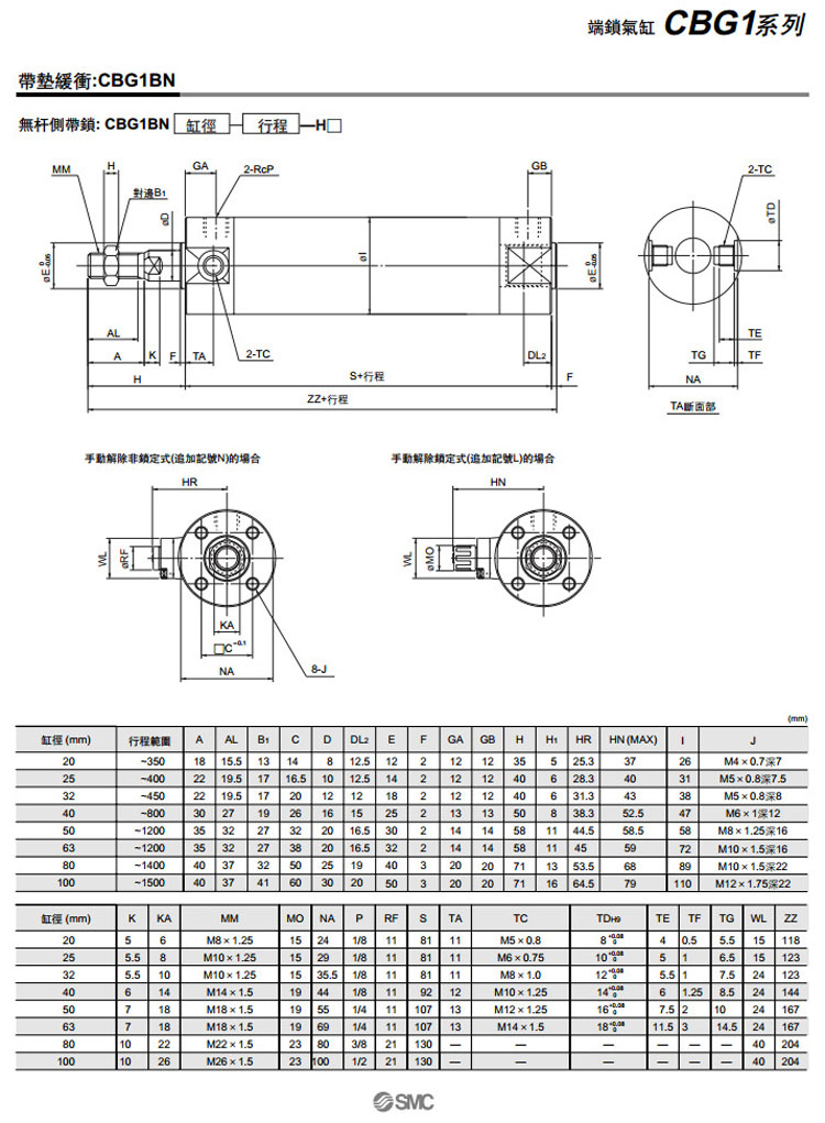 CBG1BQ20-25,CBG1LQ20-25,CBG1FQ20-25,CBG1GQ20-25,CBG1UQ20-25,CBG1TQ20-25,CBG1DQ20-25,SMC端鎖氣缸