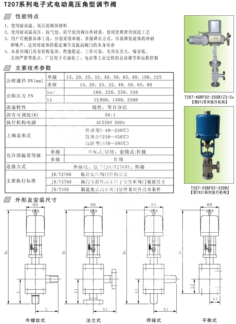 T207-160B,T207-220B,T207-250B,T207-320B-DN50,電子式電動高壓角型調(diào)節(jié)閥 |