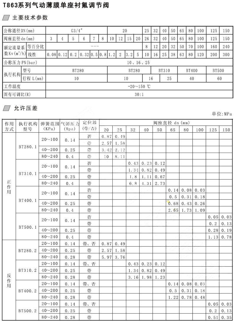 T863-10C-DN20,T863-16C-DN32,T863-25C-DN40,氣動薄膜單座襯氟調(diào)節(jié)閥