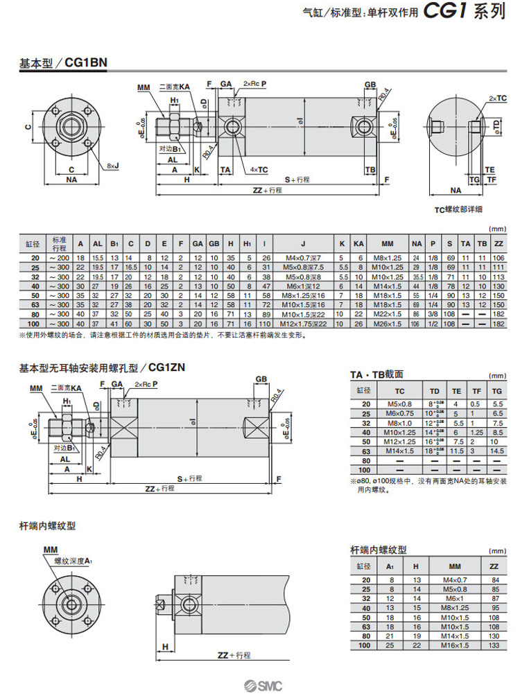CG1BN,CG1ZN,CG1LN,CG1FN,CG1GN,CG1UN,CG1TN,CG1DN,CG1BN20-25Z,CG1LN20-25Z,SMC標(biāo)準(zhǔn)型氣缸