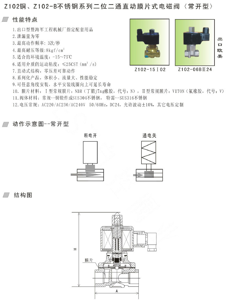 Z102-2.5,Z102-03,Z102-04B,Z102-06B,Z102-25BF,Z102-32BF,直動膜片式電磁閥 |