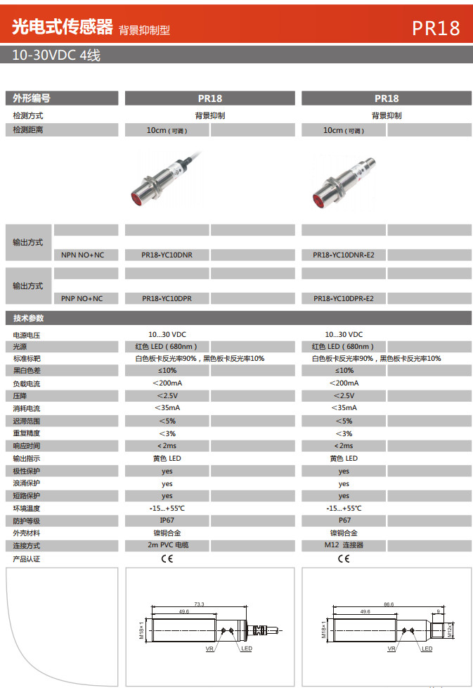 PR18-YC10DNR,PR18-YC10DPR,PR18-YC10DNR-E2,PR18-YC10DPR-E2,光電式傳感器 |