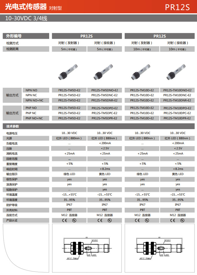 PR12S-TM5D-E2,PR12S-TM5DNO-E2,PR12S-TM5DNC-E2,PR12S-TM5DNR-E2,PR12S-TM10D-E2,PR12S-TM10DNO-E2,PR12S-TM10DNC-E2,光電式傳感器